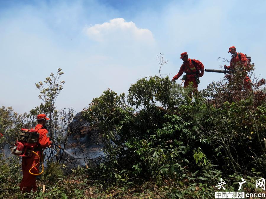 森林官兵反復清理煙點(央廣網發 嚴歡 攝)