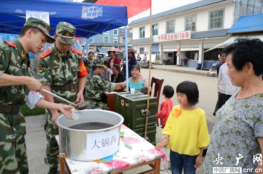目前,由外科、內(nèi)科、中醫(yī)科、五官科等邊防醫(yī)務(wù)人員正在為災(zāi)區(qū)群眾義診,已為災(zāi)區(qū)群眾發(fā)放健康宣傳資料上千份。截至5月26日12時(shí),該醫(yī)療服務(wù)隊(duì)共為600多名災(zāi)區(qū)群眾和其他救援人員義診,發(fā)放各類藥品價(jià)值1.2萬余元,熬煮大鍋藥10鍋累計(jì)服藥人數(shù)達(dá)600余人次,開展消毒防疫工作8次,消毒面積達(dá)10000余平方米,心理診療21人次。