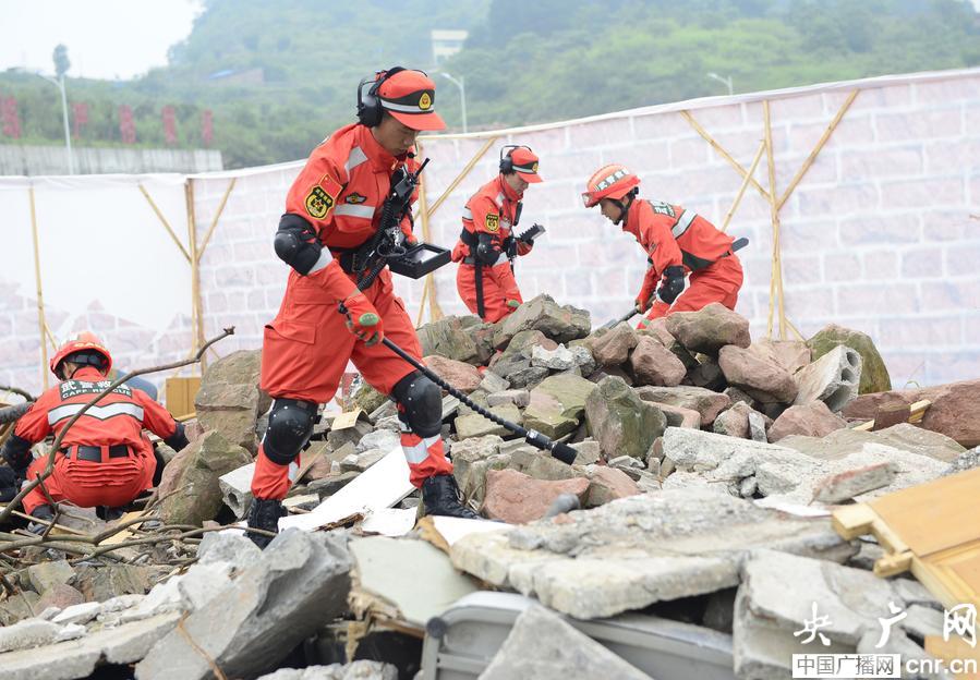 重慶武警開展應對恐怖爆炸襲擊的救援演練(央廣網記者 劉湛 攝)