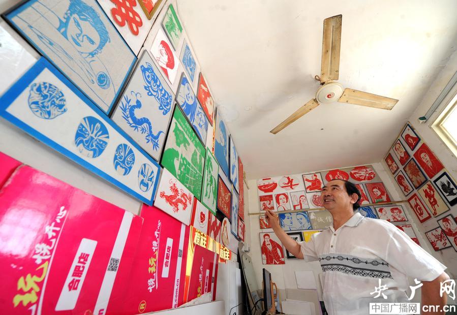 合肥市民廢物利用 自創(chuàng)環(huán)保“泡沫板畫”(央廣網(wǎng)發(fā) 解琛 攝)