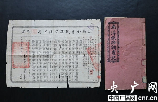 央廣網南昌6月6日消息(記者胡嘯 通訊員余揚、曾勤生)近日,南昌市檔案館為籌建特藏庫在對館藏檔案進行甄選時,又發現了一張清末南潯鐵路股票和一冊《南潯鐵路調查記》。