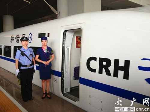 由于是第一天開通,今天來乘坐大西高鐵,體驗風馳電掣速度的旅客特別多。走進車廂,過道和車輛兩頭的連接處都站滿了人。列車員陳曦忙著幫剛上車的旅客往貨架上擺放行李。陳曦以前在普通列車上擔任乘務員,她說,與普通火車一個車廂配備一名乘務員不同,在高鐵上,一名乘務員要管四節車廂,但服務質量卻不會打折扣。這一方面是因為設施設備先進了,另一方面,普通的火車列車員需要負責打掃衛生,動車配備保潔后列車員就可以與保潔分離,會有更多的時間和精力去巡視車廂,第一時間看到旅客的需求。