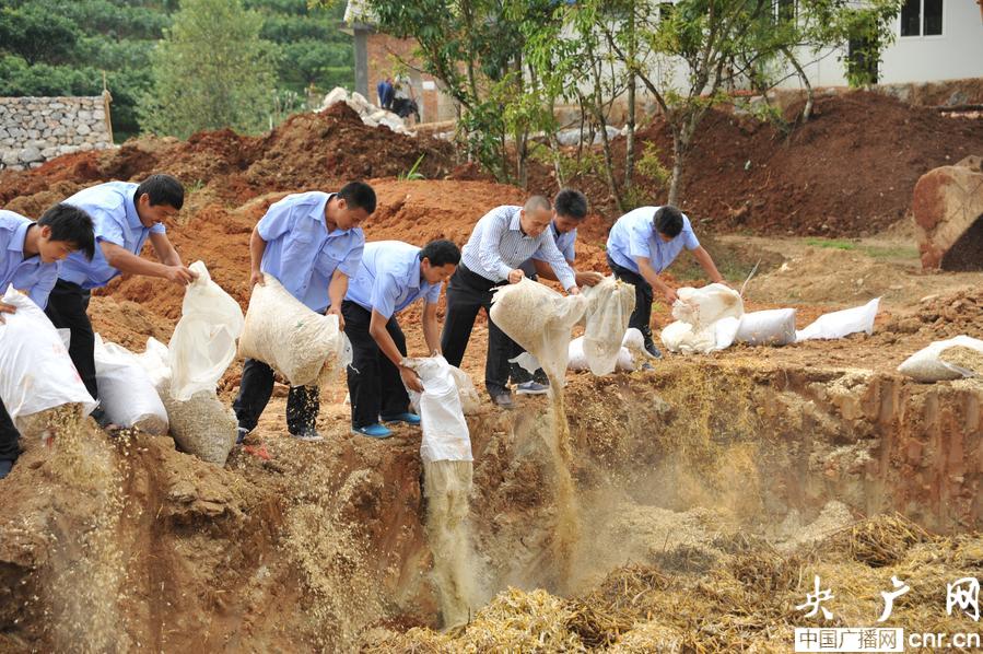 將石斛傾倒進(jìn)深坑(央廣網(wǎng)記者 李健飛 攝)