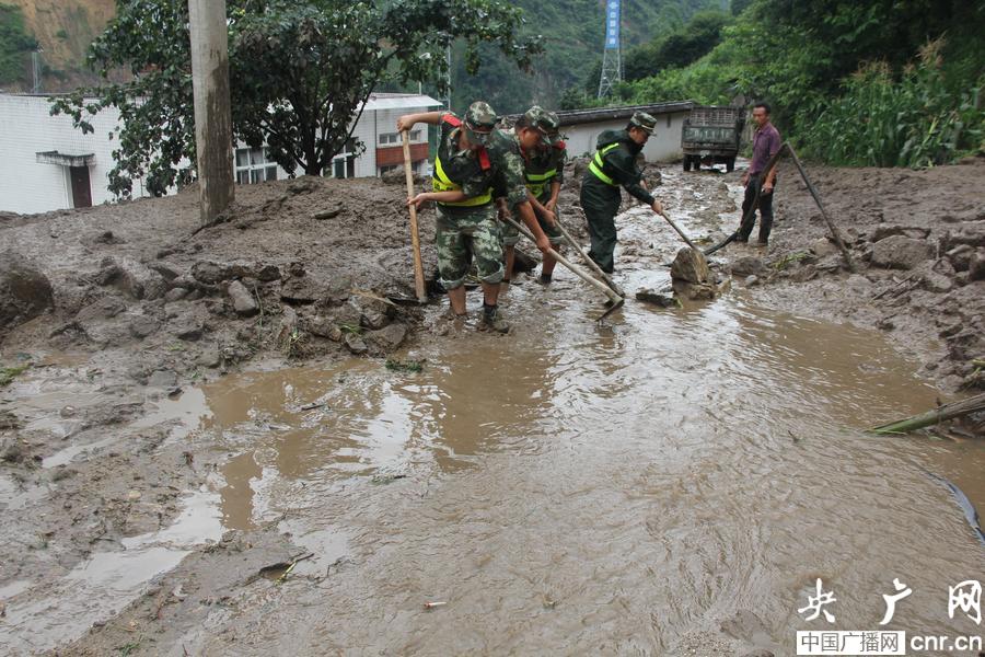 官兵在清理淤泥(央廣網記者 李健飛 攝)
