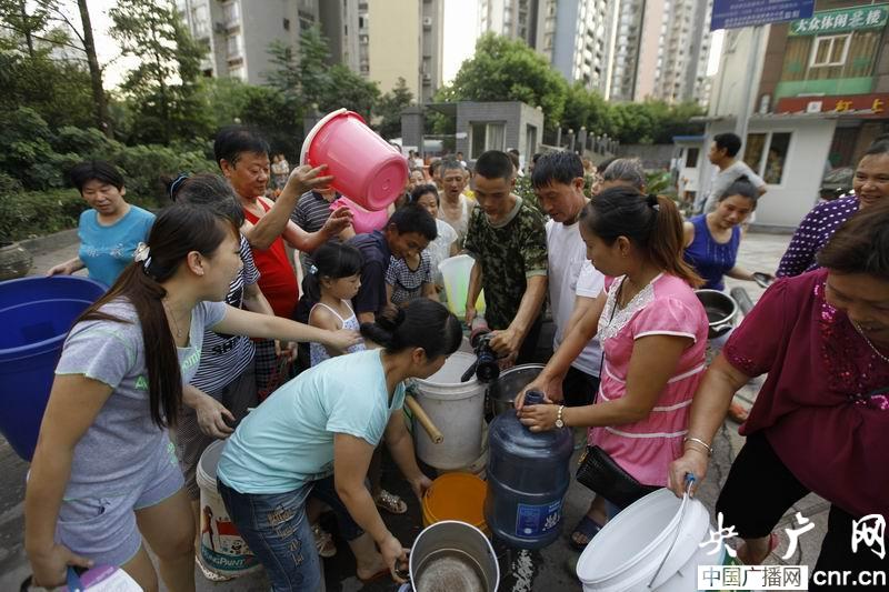 “家里老的老,小的小,沒有水怎么辦,連做飯的水都沒得”,排在接水隊伍中的黃婆婆看到消防官兵,趕緊向救援人員訴苦。不到20分鐘,4輛消防車30余噸水就被分發一空,加上區環衛局3輛大型水罐車趕來支援,暫時解決了居民們的燃眉之急。
