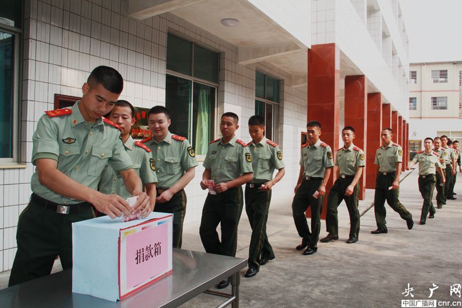 央廣網貴陽消息(記者周強 通訊員張海濤 鄧剛)今天(8月5日),武警貴州總隊黔南支隊警勤中隊組織為云南魯甸地震受災戰友代志大捐款7000余元。