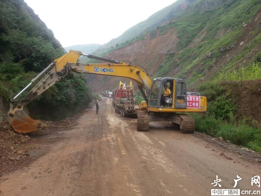 徐工挖掘機進入魯甸災區現場作業(央廣網記者 楊守華 攝)
