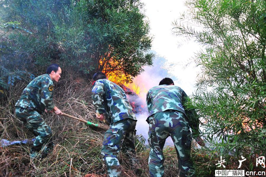 當天6時50分許,該支隊駐福清部隊崗哨發現南城村北面山頭直冒黑煙,隱隱約約有火光出現,便立即將警情向大隊指揮中心報告。接警后,該大隊立即組織20余名官兵攜帶滅火工具趕赴現場。