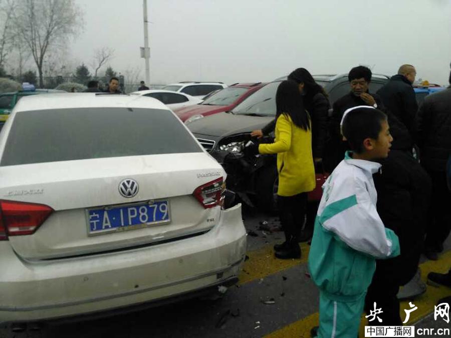 央廣網銀川11月28日消息 (記者許新霞 通訊員劉曉晨 仇肖)今天上午7時25分左右,寧夏銀川市由于大霧能見度低,加上橋面結冰,市區賀蘭山路閱海橋由西向東方向下坡路段發生37輛車碰撞的交通事故,所幸沒有造成人員傷亡。