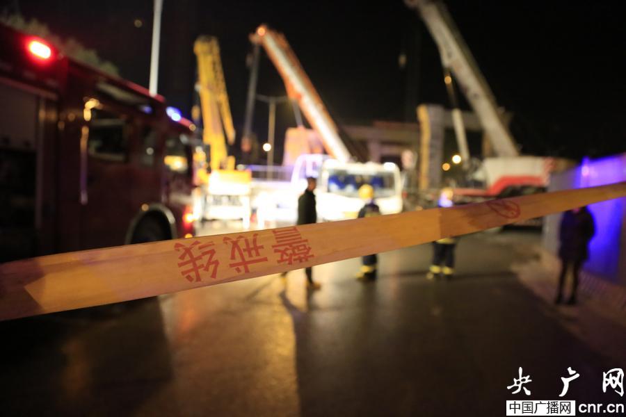 12月17日,湖南省長沙市人行天橋垮塌的事故現(xiàn)場拉起了警戒線。(央廣網(wǎng)發(fā) 王海迪 攝)