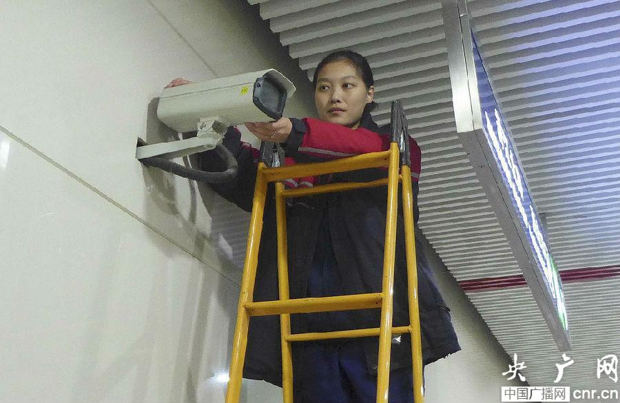員工正在調(diào)整車(chē)站攝像機(jī) 北京地鐵供圖(央廣網(wǎng)記者 李文蕊 攝)