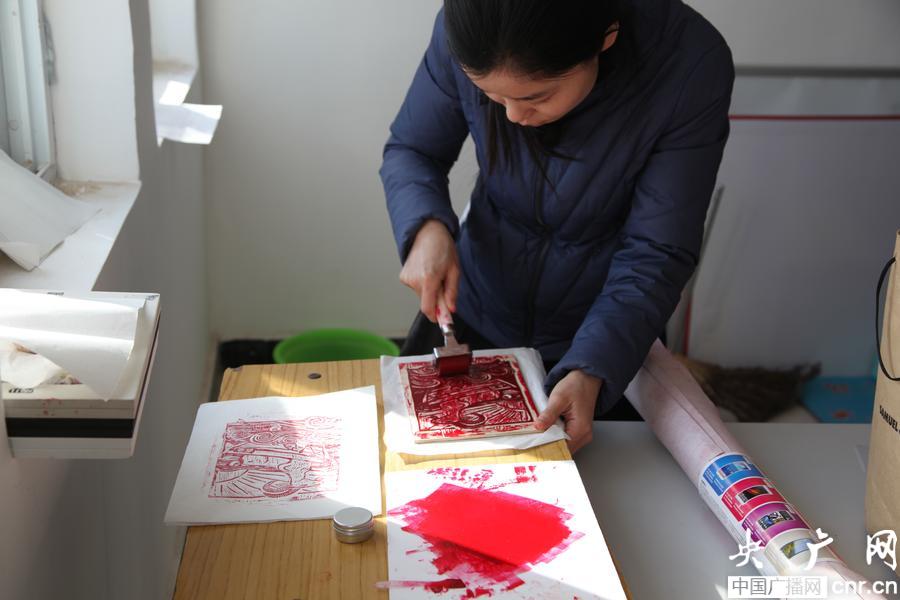 活動(dòng)在北京延慶香營(yíng)鄉(xiāng)山底下村拉開了序幕,村民早早的就等候在大隊(duì)部了。此次活動(dòng)除了為村民現(xiàn)場(chǎng)寫春聯(lián)外,還現(xiàn)場(chǎng)制作年畫和富有年味的版畫。寫春聯(lián)和制作年畫的都是在各村任職的大學(xué)生村官,他們發(fā)揮自己在書法和繪畫方面的特長(zhǎng),義務(wù)為百姓服務(wù)。“還是頭一次現(xiàn)場(chǎng)看制作年畫,俺得等著拿一張。”村民趙寅恩樂呵呵的說。這邊制作年畫,那邊寫對(duì)聯(lián),滿屋子的歡聲笑語,年味十足。