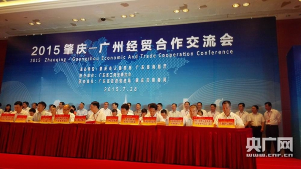 央廣網廣州7月28日消息(記者傅曉勤 通訊員段建新)今天(28日)下午,由肇慶市政府和廣東省商務廳聯合主辦的“2015肇慶—廣州經貿合作交流會”在廣州舉行,會上共簽約投資項目25宗,總投資金額157.43億元。