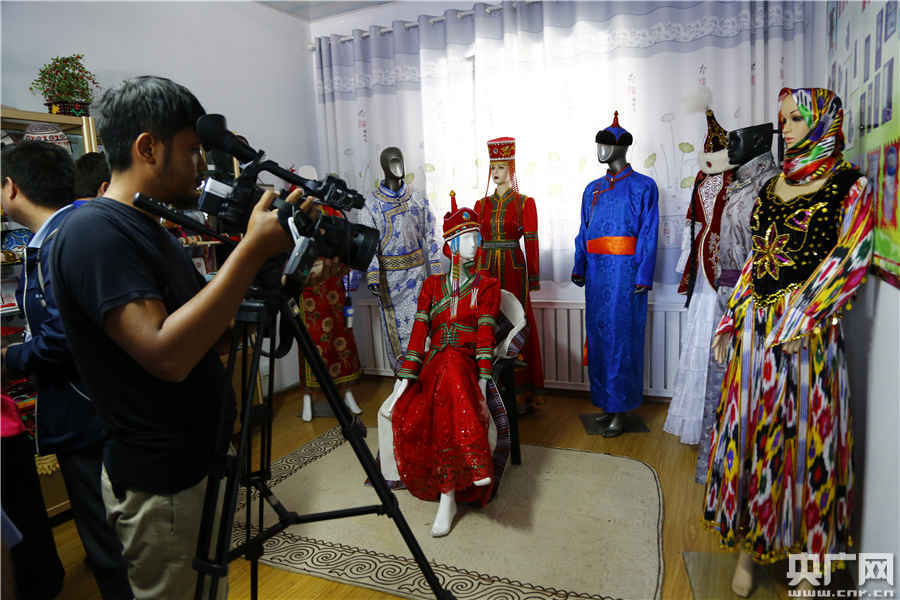 新疆布音庫文化傳播有限公司精美的各民族服飾引起了記者極大的興趣