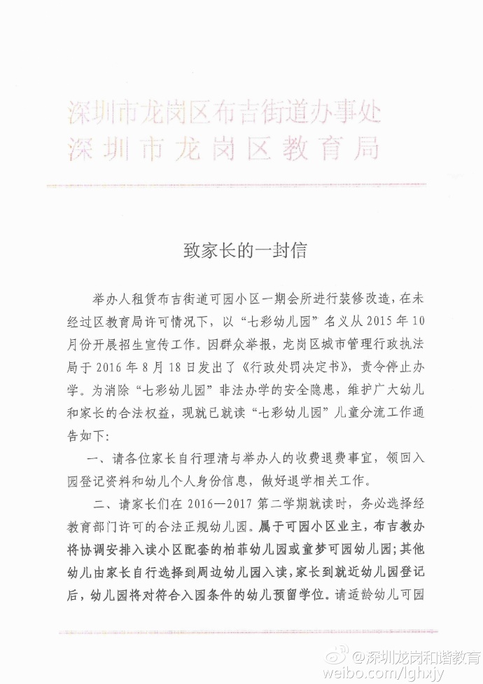 今天記者通過“深圳龍崗和諧教育”的微博看到了深圳龍崗教育局2月16日發出的情況通報: