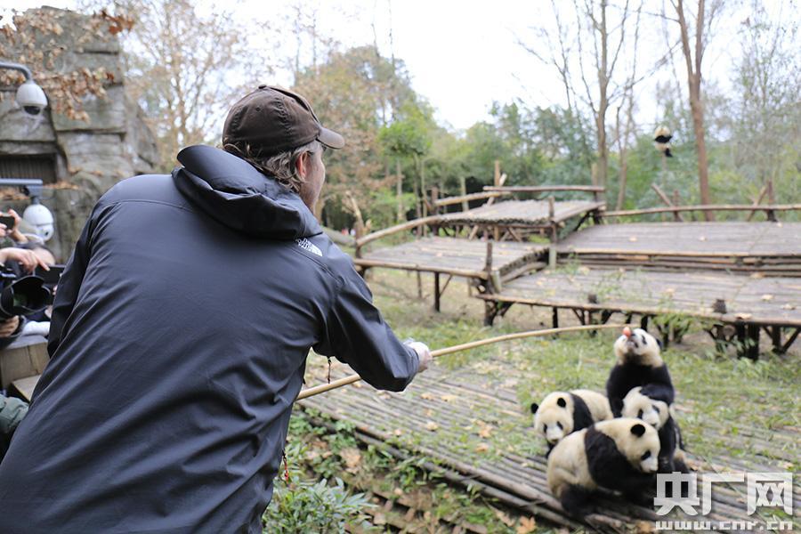 央廣網成都2月21日消息(記者劉濤)2月21日,成都大熊貓繁育研究基地聯合保護國際基金會(簡稱:CI)共同邀請國際知名影星李·佩斯先生赴基地參加大熊貓飼養員保育體驗活動。熱愛公益事業的李·佩斯先生此次來到成都大熊貓繁育研究基地參與大熊貓保育活動,也是愛護瀕危野生動物的舉措。主辦方擬通過本次體驗活動,呼吁全球共同關注地球生態壞境,保護大熊貓,保護人類自己的家園。 李·佩斯先生因出演《霍比特人》中的精靈王一角,被中國影迷所熟知。他熱愛并長期致力于各項公益事業,2016年3月,為保護國際基金會公益片《大自然在說話》配音,為山“獻聲”,呼吁大家愛護環境,保護大自然;2017年2月,為保護國際基金會的虛擬現實影片《樹冠之下》(暫譯名)配音,為保護亞馬遜森林出力。 保育體驗活動當天,李·佩斯來到了成都大熊貓繁育研究基地月亮產房、大熊貓幼年園、熊貓廚房等主要場館 ,跟著網紅奶媽梅燕學習向大熊貓寶寶喂瓶瓶奶的方法,向幼年園飼養員譚金淘學習如何向亞成年大熊貓投喂蘋果,并學習制作了大熊貓窩窩頭。其中,最讓李·佩斯印象深刻的是學習向大熊貓寶寶喂瓶瓶奶的保育活動。當梅奶媽用四川話喊道“喝nei nei嘍”,原本在運動場四處玩耍的大熊貓寶寶們都機靈地跑到奶媽附近,安靜地坐在草地上,等待李·佩斯奶爸和梅奶媽將奶瓶遞給它們。在梅奶媽的指導下,李·佩斯先生小心翼翼地將奶瓶遞到熊貓寶寶的嘴邊,可愛的熊貓寶寶急不可待地將奶瓶拿到嘴里吸吮了起來,就像人類的嬰兒一樣。李·佩斯先生耐心地等待熊貓寶寶一點一點地吸吮,直到它們喝完瓶中的奶,完全就像照顧可愛的嬰兒。 “它們實在太可愛了!它們不應該因為人類的行為而滅絕,我們一定要保護它們賴以生存的環境。”和大熊貓短暫的相處,讓李·佩斯先生對大熊貓的保護工作產生了濃厚的興趣。 最讓李·佩斯先生感慨的則是觀摩大熊貓行為訓練。旁觀練員 James Ayala 博士非常耐心地、一步一個指令地訓練大熊貓,也了解到這些訓練是為讓大熊貓能夠回到大自然而做的訓練,李·佩斯先生表示,希望這些可愛的寶貝能早日回到自己的“家園”,他相信,最好的保護就是它們可以在自己的家園里自由的生活。 成都大熊貓繁育研究基地主任張志和博士向李·佩斯先生授予“成都熊貓形象大使”證書,李·佩斯先生激動地表示,這次的大熊貓保育體驗讓他加深了對大熊貓的生存現狀和保護工作的了解,他愿意做個合格的“成都熊貓形象大使”,用自己的影響力呼吁大家關注對大熊貓及其生存環境的保護。 -