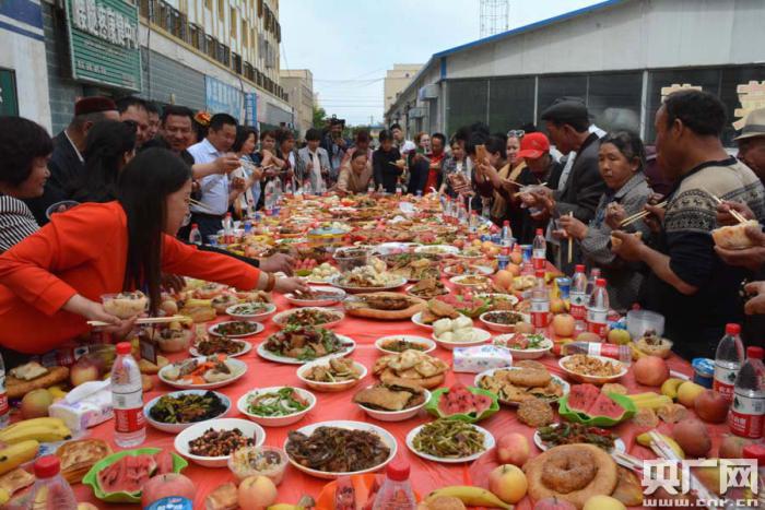 各族群眾和結(jié)對親戚共品“百家宴”(央廣網(wǎng)發(fā) 王波 攝)