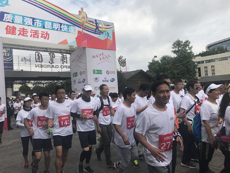 本次活動設10公里、5公里和親子1.5公里比賽,每個組別分設有一等獎5名、二等獎7名,三等獎8名。活動受到了廣大市民的積極支持,線下活動報名渠道開通僅僅兩天時間,成人組的名額就已經全部報滿,1500多名不同年齡段的市民積極參加。活動現場,一支銀發健走團和一支由昆明市政府機關第三幼兒園的小娃娃們組成的幼兒健走團十分引人關注。這一老一少的健走隊身著白色健走服,一起在初秋的陽光下,邁開步伐,為“質量強市”點贊,為“質量昆明”加油。