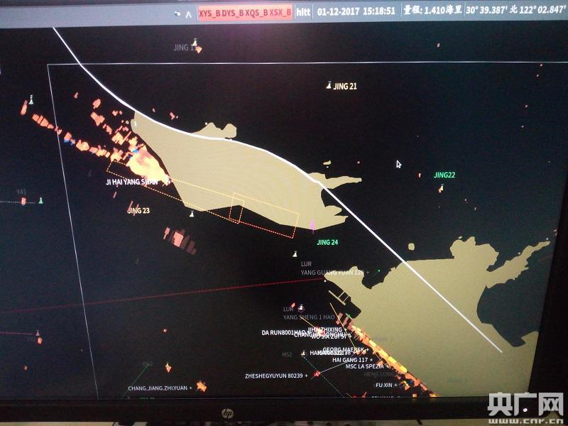 洋山港海事局VTS已設置四期碼頭的專項監控窗口(央廣網發 徐雷雷攝)