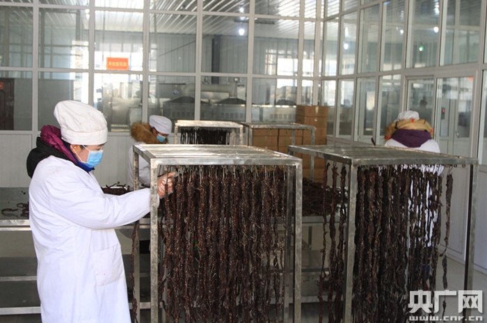 工人正在制作牦牛肉干(央廣網記者 普布次仁 攝)