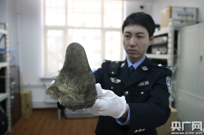 大連海關查獲的犀牛角(央廣網發 李洋 攝)