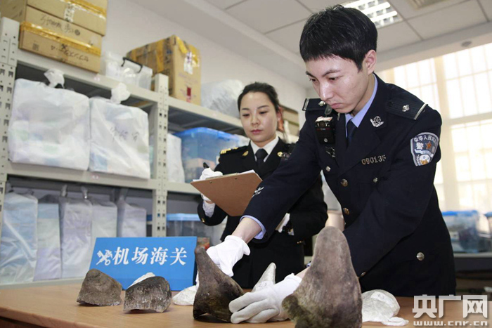 經國家林業局野生動植物檢測中心鑒定,大連海關查獲的四個角塊均為犀牛角。由于國際市場對犀牛角有所需求,盜獵者因此可獲得非常高的經濟利益。在有些國家,犀牛角被制成傳統藥材,有些國家把犀牛角看作社會級別的象征,由于利益驅使犀牛被大肆捕殺,現被列入《瀕危野生動植物種國際貿易公約》附錄。中國作為《瀕危野生動植物種國際貿易公約》簽字國,從1993年起,犀牛角被列為國家禁止進出口的珍貴動物制品,對出售、收購、運輸、攜帶和郵寄犀牛角的行為都要依法查處。目前,該案已移送緝私部門作進一步調查處理。