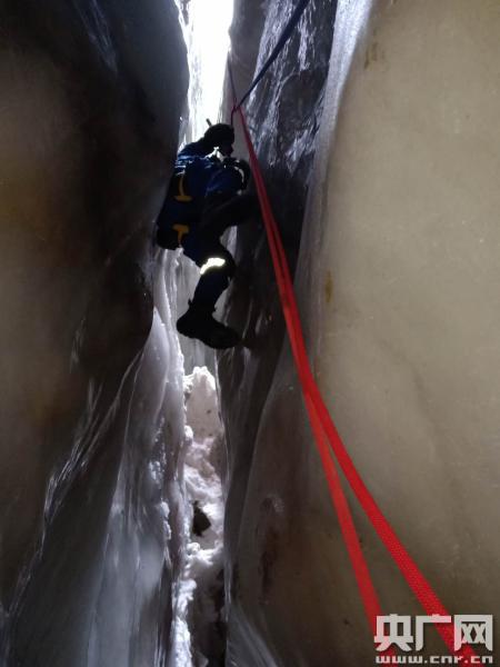 狹窄的冰縫給救援帶來了不小的困難(央廣網發 甘肅藍天救援隊供圖)
