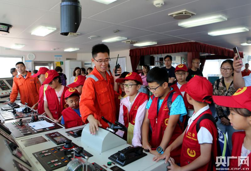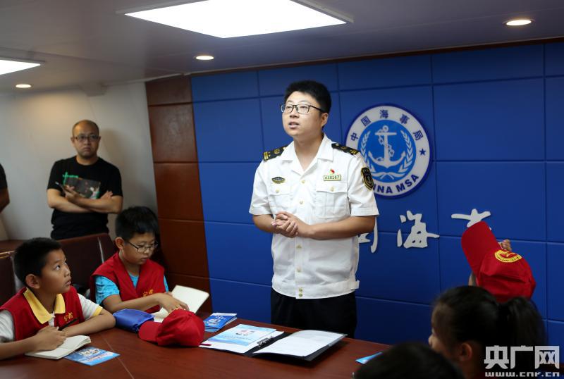 海事工作人員向孩子們介紹海事執(zhí)法船的相關工作(央廣網(wǎng)發(fā) 劉世方 攝)