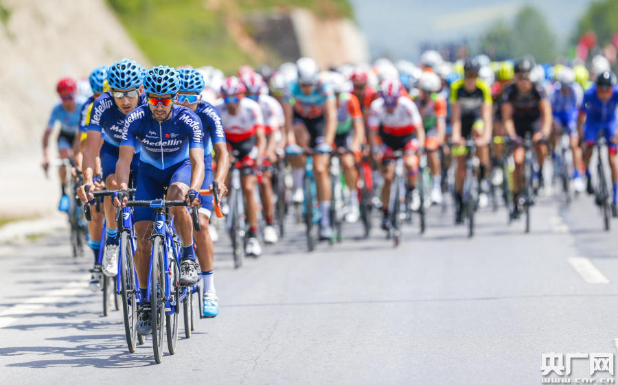 哥倫比亞麥德林車隊在集團(tuán)前方領(lǐng)騎(央廣網(wǎng)發(fā) 環(huán)湖賽融媒體中心供圖)