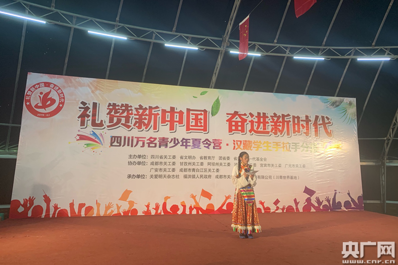央廣網成都7月22日消息(記者韓民權 見習記者楊煜)22日,“禮贊新中國,奮進新時代”四川省萬名青少年夏令營“漢藏學生手拉手”特色分營在成都開營。來自甘孜、阿壩的200名藏族學生和來自瀘州、宜賓、廣元等地的200名漢族學生參加了此次活動。漢藏學生將在活動中共同學習,增進友誼。