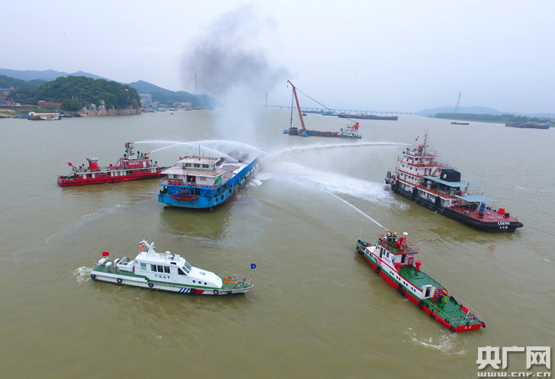 海事部門組織開展滅火救援。(央廣網發 長江海事局供圖)