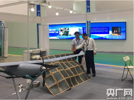 展商在向參會人員介紹太陽能隨行電源包。(央廣網見習記者 張曉琳 攝)