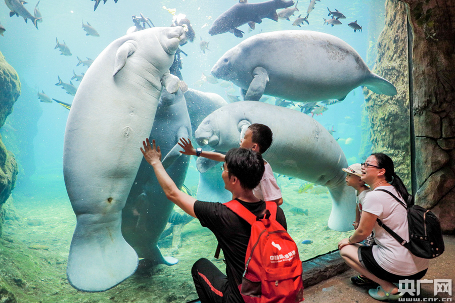 游客與海牛“互動”(央廣網發 通訊員供圖)