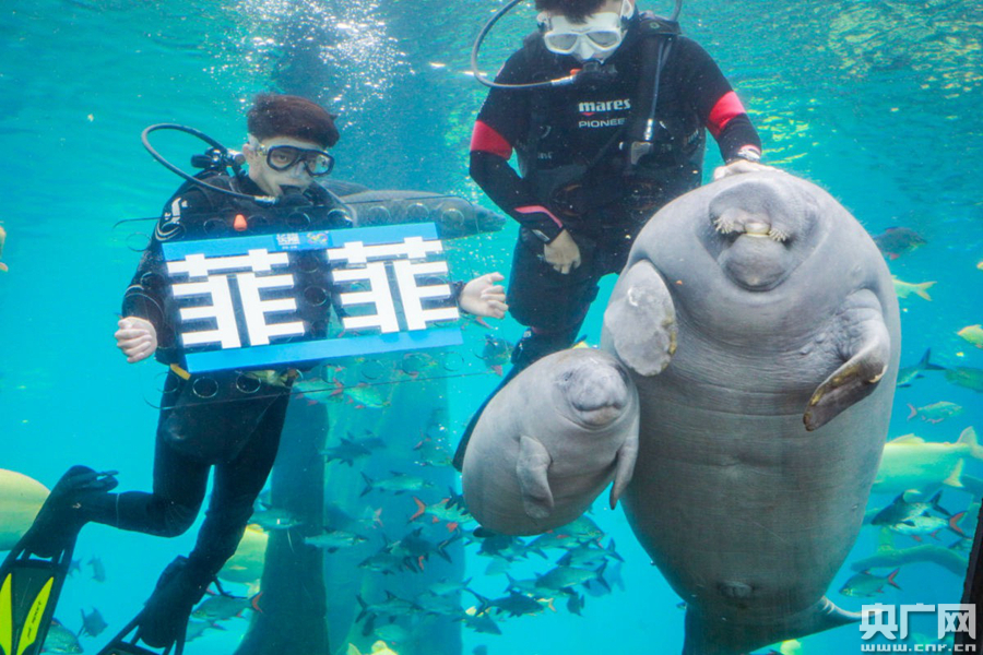 據悉,世界現存三種海牛:亞馬遜海牛、西印度海牛、西非海牛,均被列入《世界自然保護聯盟》(IUCN)瀕危物種紅色名錄,西非海牛被列為“易危”物種。母海牛的乳腺長在胸鰭的基部,也就是人類的胳肢窩,因母牛把小崽抱在胸前進行喂奶,被古代航海水手誤認為“美人魚”而流傳至今。西非海牛雌性3歲性成熟,雄性一般9-10歲性成熟,因發情少、孕期長達13個月,繁育率低成為公認的世界難題。去年5月8日,雄性海牛寶寶“比爾”在珠海長隆海洋王國成功誕生,為全國首例。小“比爾”出生以來備受關注,如今體重已超過250kg,每天進食約15-20公斤。