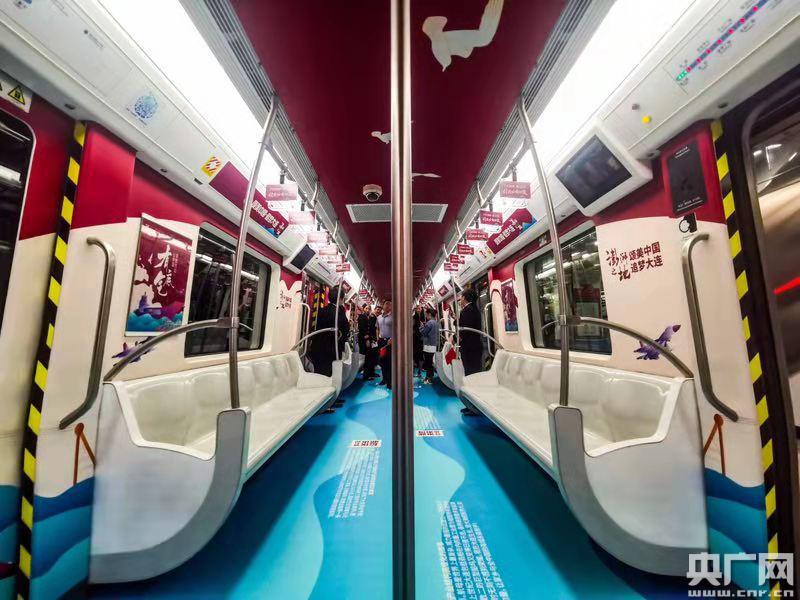 央廣網大連9月27日消息(記者賈鐵生)9月27日,“頌美中國 追夢大連”主題列車在大連地鐵正式上線。在車廂里,不僅可以看到中國各地的地標建筑、中國第一顆衛星“東方紅”、祖國人民生活的變遷,還可以看到大連國際會議中心、中山公園、跨海大橋,以及在大連這座文明、浪漫元素。置身其中,仿佛來到“移動畫廊”,能感受到70年來,新中國發生的天翻地覆的變化,以及大連的不斷發展。
