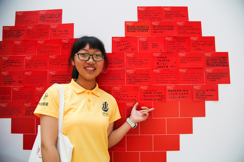 現(xiàn)場人頭攢動,師生們爭相寫下對2049年的祖國、母校和自己的展望,并將明信片貼在背景墻上,拼成了“I·CHINA”的大字。