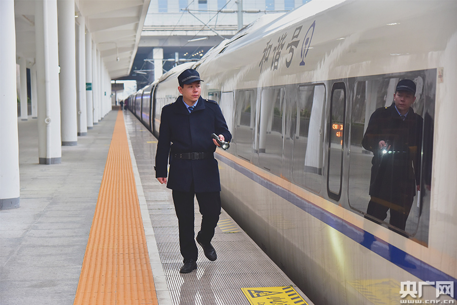 倘若我們把鏡頭聚焦在這些高鐵動車的背后,我們總能在每一列動車上發(fā)現(xiàn)一張堅(jiān)毅專注的面孔,他們有一個(gè)共同的名字——隨車機(jī)械師。1月20日6點(diǎn)45分,由CRH3C型動車組擔(dān)當(dāng)運(yùn)行任務(wù)的C6432次列車緩緩駛離重慶北站,中國鐵路成都局集團(tuán)有限公司重慶車輛段隨車機(jī)械師薛稀吉日開始了又一次的春運(yùn)值乘任務(wù)。
