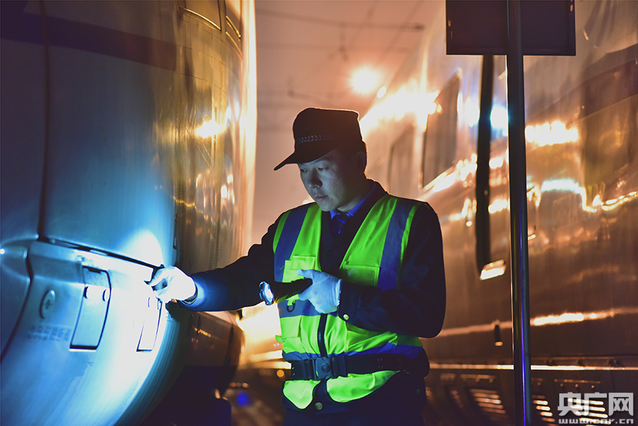 凌晨,薛稀吉日開始了擔(dān)當(dāng)車次的車下作業(yè)(央廣網(wǎng)發(fā) 通訊員陳亞 攝)