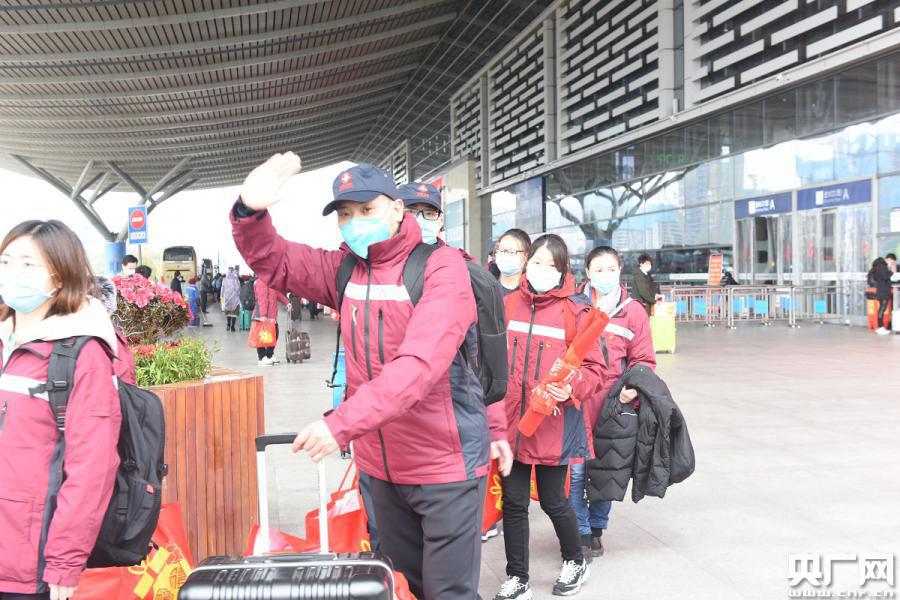 央廣網長沙2月8日消息(記者姜文婧 通訊員趙曉華 沙麗娜)2月8日下午3點53分,湘雅二醫院130名醫護人員乘坐的G580次列車駛離長沙南站。這130人,是中南大學湘雅二醫院增援武漢新冠肺炎疫情防控派遣的第三支醫療隊伍,也是湘雅二醫院歷史上應對國家重大突發公共衛生事件一次性派出的規模最大的醫療隊。醫療隊抵達武漢后將在同濟醫院中法院區開展重癥新冠肺炎病人的救治工作。