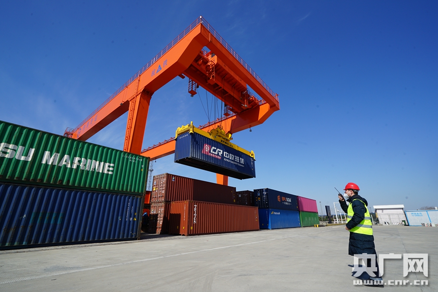 中歐班列裝載調(diào)度現(xiàn)場(央廣網(wǎng)發(fā) 通訊員供圖)