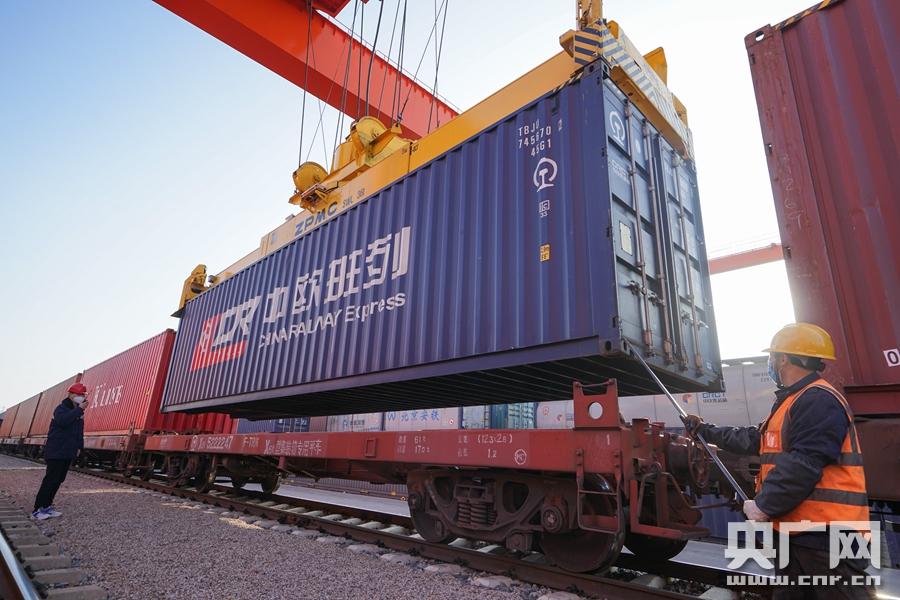 中歐班列裝載現(xiàn)場(央廣網(wǎng)發(fā) 通訊員供圖)