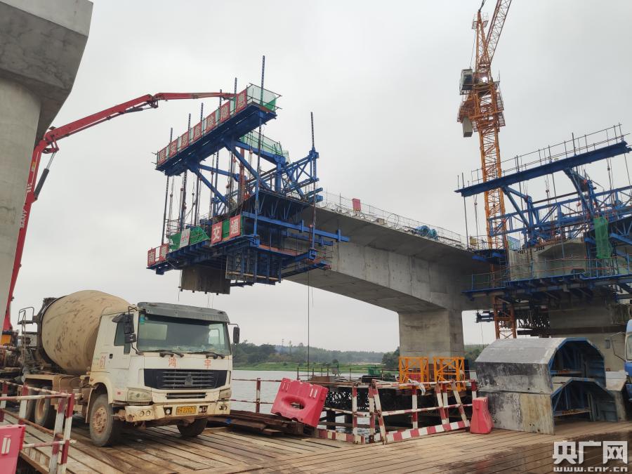 3月5日,歷時5個小時,項目重點控制性工程全長1207.5米的鑒江特大橋順利完成22墩7號塊澆筑,標志著項目控制性工程鑒江特大橋懸澆施工已恢復至節前施工狀態。