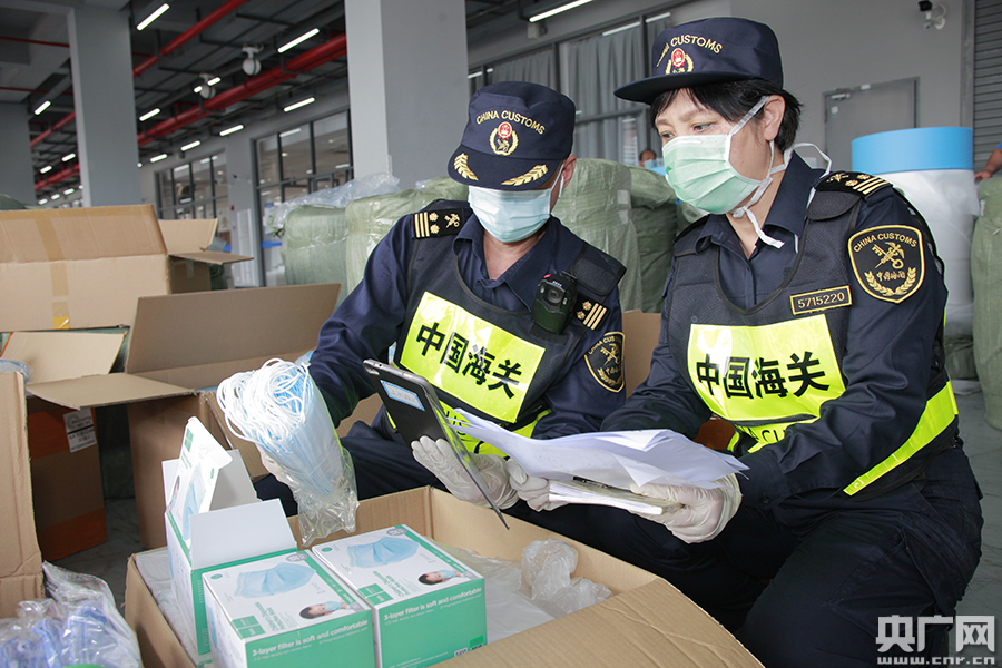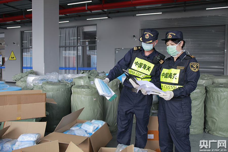 拱北海關查獲出口貨物夾藏口罩(央廣網發 通訊員供圖)