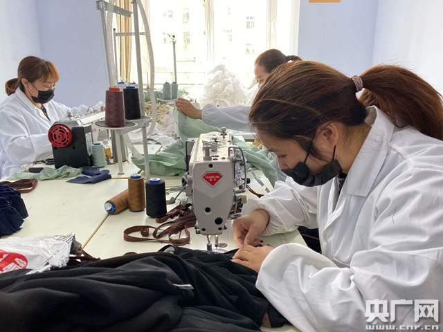 人才家園社區開設扶貧車間,組織小區貧困家庭勞動力進車間務工,實現就近轉移就業(央廣網見習記者 閆金楓 攝)