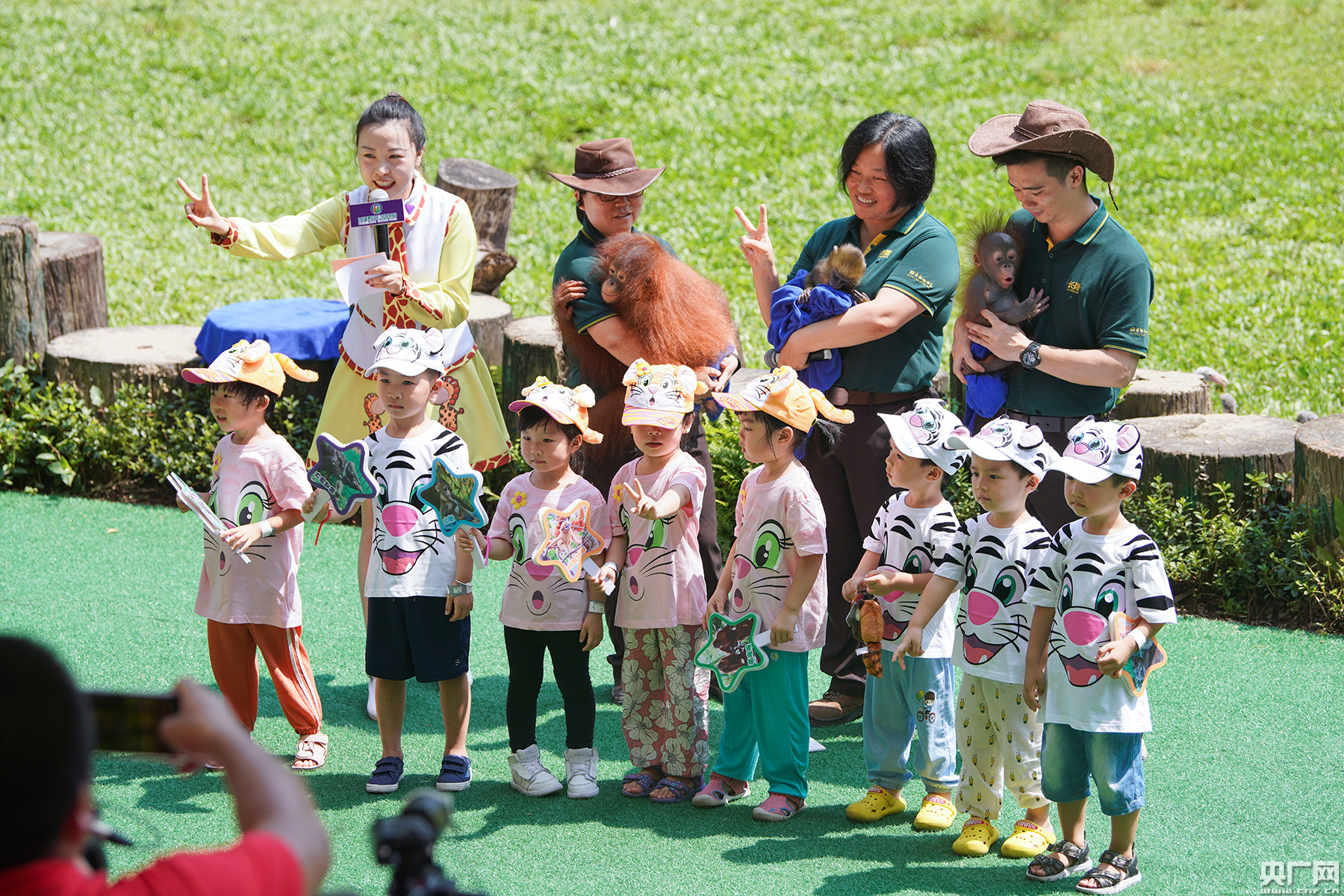 記者在長隆野生動物世界看到,十種新生的珍稀動物寶寶與少兒代表一起打開“長隆超級探索營”。在大鼻猴、金絲猴、亞洲象等展區,小朋友們與長隆動物專家一起現場探索了珍稀動物繁育的故事。