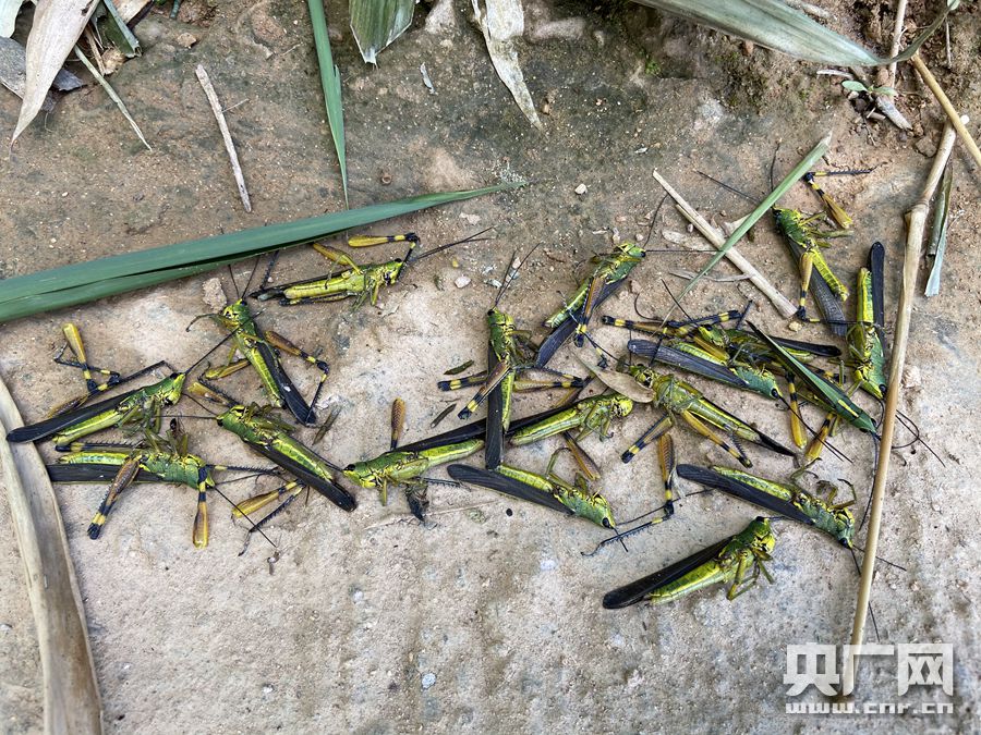云南全面防控黃脊竹蝗遷飛傳入(央廣網發 云南省林草局供圖)