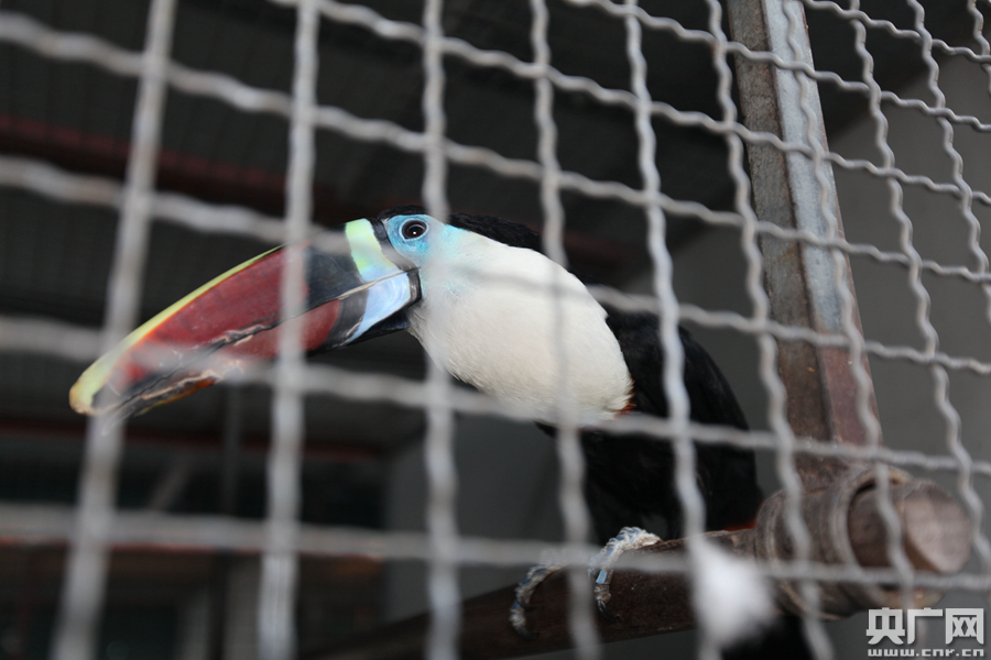圖為海關緝私警察查獲的涉嫌走私進境的犀鳥(央廣網發 海關供圖)