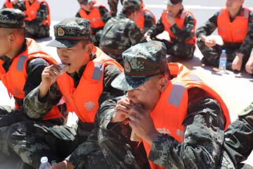 武警戰士在休息點簡陋就餐(圖片攝影:張華釗)