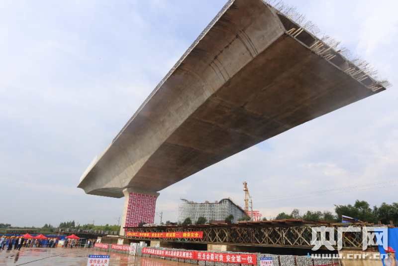 當天轉體施工現場,記者看到,轉體牽引系統由一套2臺ZLD-4000型400噸千斤頂、4臺50噸助推千斤頂、2束預埋于上轉盤里的鋼絞束、牽引反力座、頂推反力座構成。平衡系統由結構本身、上轉盤的鋼管混凝土撐腳、下轉盤的鋼板滑道及其上鋪設的四氟滑板、大噸位千斤頂及梁頂配置的備用配重塊構成。在各個工作面的建設者的合力配合下,經過48分鐘的平穩旋轉,大橋實現成功轉體。