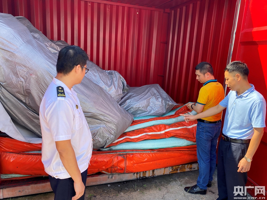 執(zhí)法人員檢查溢油應(yīng)急設(shè)備庫(央廣網(wǎng)發(fā) 肇慶海事局供圖)